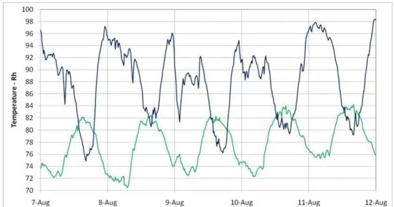 但是,如果一個居住在潮溼氣候下的房主,在一個典型的夏日(35℃,55%Rh)使用同樣的降溫方式,那他們最終會離理想的居住條件越來越遠(29攝氏度,85%Rh)。